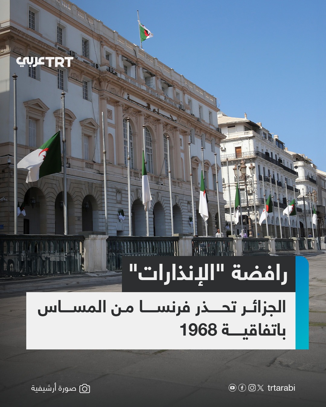 جاء ذلك في بيان لوزارة الخارجية الجزائرية الخميس، رداً على طلب رئيس الوزراء الفرنسي فرنسوا بايرو، مراجعة الاتفاقيات بين باريس والجزائر، وعلى رأسها اتفاقية الهجرة لسنة 1968، محددا مهلة من شهر إلى 6 أسابيع للقيام بذلك.